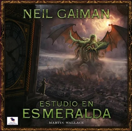 El juego de mesa Estudio en Esmeralda se inspira en el argumento central del premiado relato del mismo nombre, en el que los mundos de Sherlock Holmes y H.P. Lovercraft se combinan con la historia de la humanidad.