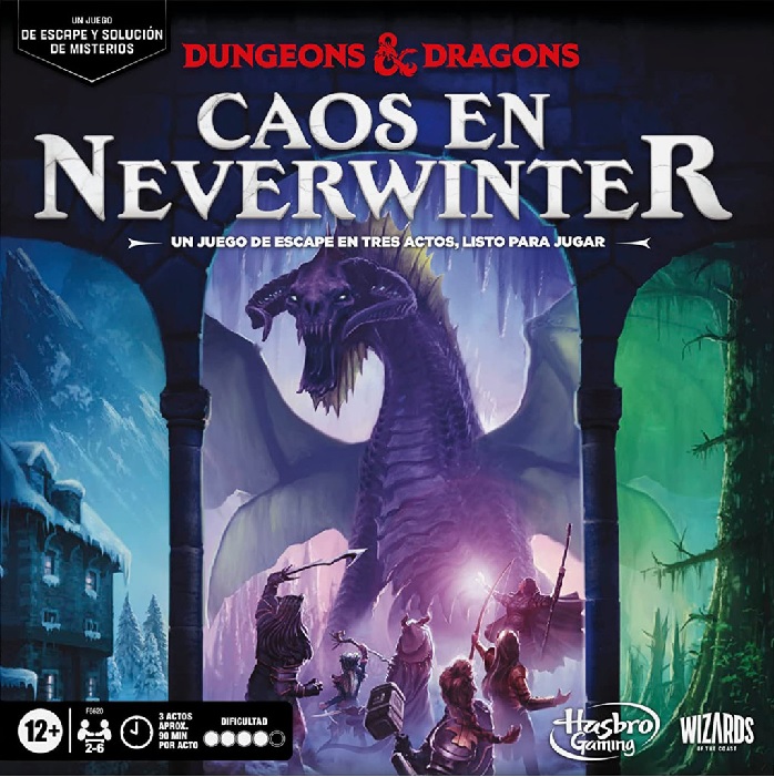 Dungeons & Dragons: Caos en Neverwinter: ¡Este juego de rol, escape y solución de misterios es una fascinante aventura al estilo Escape de la habitación contada en 3 partes! Únete a un grupo de amigos aventureros para investigar una serie de alarmantes desapariciones que han ocurrido en el valle del Viento Helado. El grupo pronto descubrirá que algunas de las personas desaparecidas no lo están en realidad… ¡y un misterio aún mayor aparece! Esta desgarradora aventura de 3 partes se puede dividir en 3 sesiones de juego o se puede jugar de 1 heroica sentada.