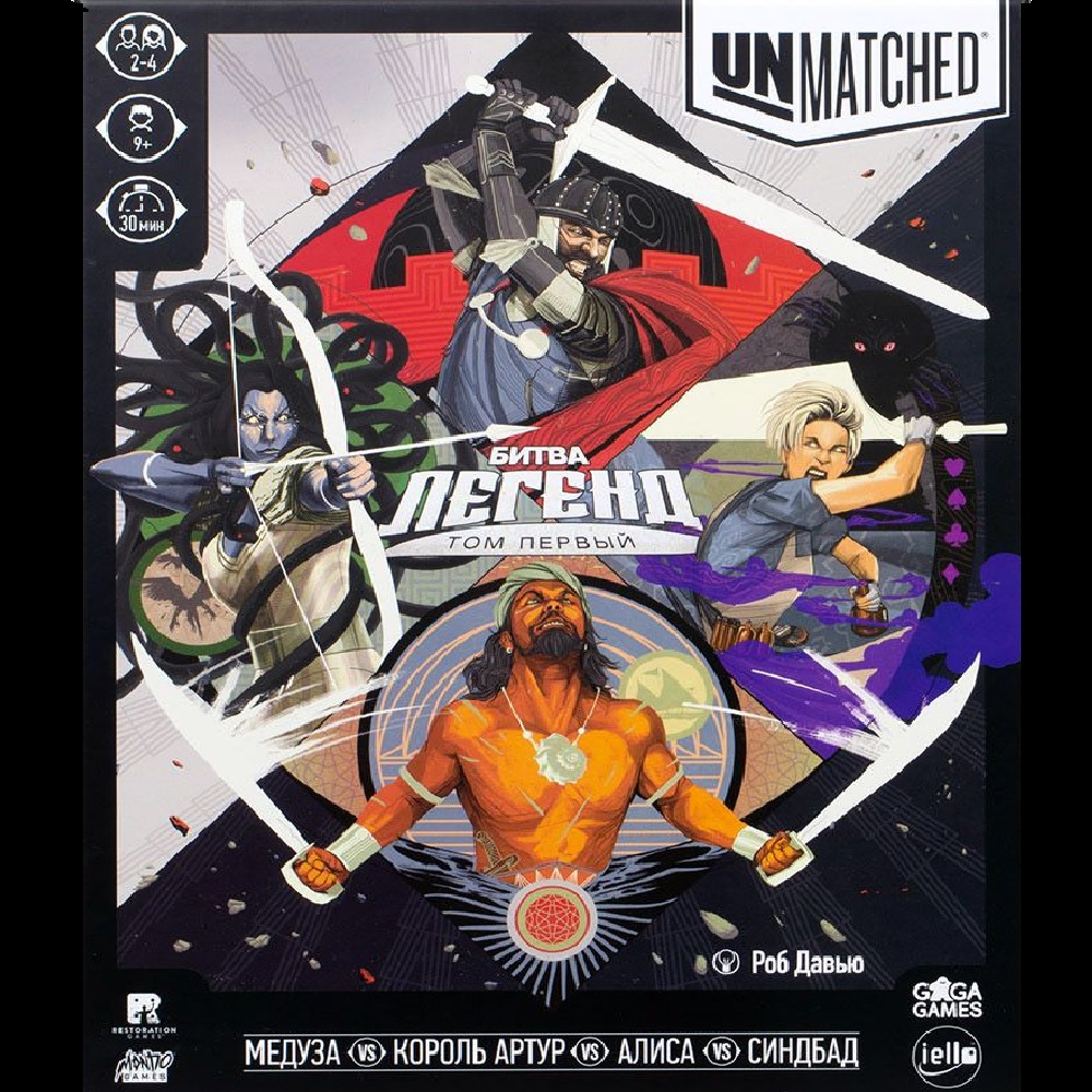 Unmatched Battle of Legends Volumen 1 es la primera caja básica, que incluye cuatro personajes: Simbad, Medusa, Rey Arturo y Alicia.